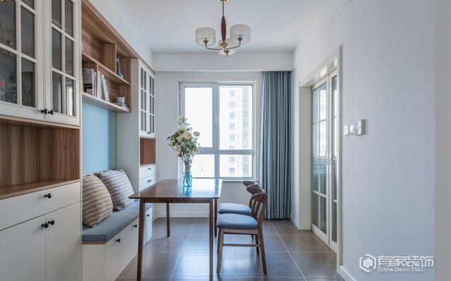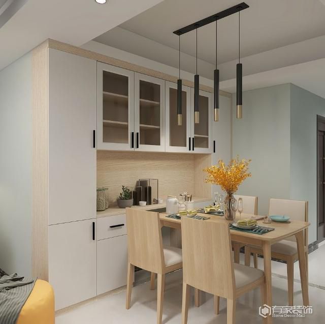 為何家里的餐桌上,總是堆滿各種物品?很多時候,都是因為收納不夠用導致的。因而,也不管餐廳空間多寡,就往餐廳堆收納柜。然后,餐廳區(qū)域瞬間變得愈發(fā)狹窄了。對于餐廳收納不夠用,放置普通成品收納柜,又容易占空間(顯?。┑睦Ь郑鉀Q方法就是嵌入式設(shè)計。沒錯,我們在裝修餐廳的時候,記得預(yù)留一個打餐邊柜的位置。利用餐廳預(yù)留的墻體(非承重墻),打造嵌入式餐邊柜,墻體顏色采用易反射光線的淺色系。恩,不僅僅解決了餐廳收納難題,嵌入式設(shè)計、淺色系配色等讓餐廳在視覺上顯大。PS:餐邊柜記得做頂天立地設(shè)計。