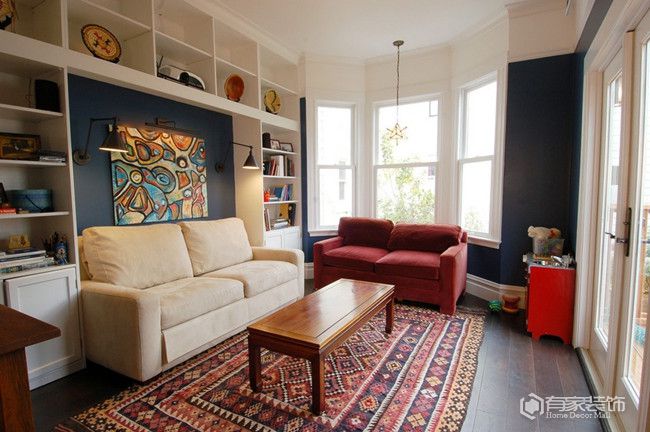 如果說自家勤于整理,東西用完了也是及時歸位,可是收納還是不夠用。這個時候,我們就要想方設(shè)法“擠”出更多的收納。客廳想要增加收納,背景墻是一大突破口。摒棄雞肋般的電視/沙發(fā)背景墻,將電視墻改造成整墻的通頂電視收納柜,記得給電視柜裝個柜門,減少衛(wèi)生死角。同時,沙發(fā)不靠墻,預(yù)留空間規(guī)劃個靠墻的書柜或者收納柜。值得一提的是,無論陽臺門垛是否拆除,我們都可以在陽臺處人工打造實用型飄窗柜,進一步強化客廳的收納。