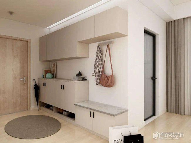 在部分不明真相的人眼里,玄關(guān)的作用就是用來(lái)放鞋子。隨隨便便買(mǎi)個(gè)成品鞋柜就行了,沒(méi)必要多花錢(qián)做定制設(shè)計(jì)。其實(shí),定制鞋柜的實(shí)際作用,要遠(yuǎn)高于成品鞋柜。當(dāng)然了,即便定制玄關(guān)設(shè)計(jì)很實(shí)用,有些項(xiàng)目還是沒(méi)必要多花錢(qián),比如說(shuō)換鞋凳。這里的換鞋凳,主要指的是柜內(nèi)換鞋凳。不可否認(rèn),柜內(nèi)換鞋凳解決了玄關(guān)換鞋不便的傳統(tǒng)問(wèn)題。只不過(guò),柜內(nèi)換鞋凳對(duì)于所用人的體型有限制。因而,柜內(nèi)換鞋凳改成收納區(qū),顯得更實(shí)用。至于玄關(guān)換鞋不便的問(wèn)題,可以在墻上安裝可折疊的玄關(guān)凳。玄關(guān)空間足夠用的,也可以直接放置成品凳子。