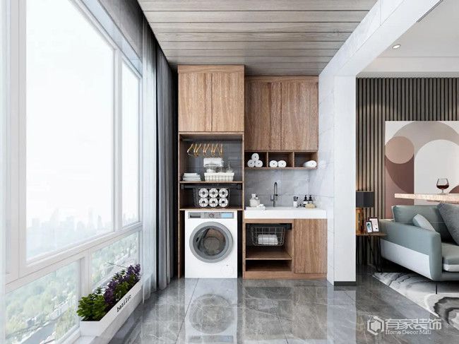 裝修時,不是看什么好看就裝什么,必須得貼合實際。如果說你家有兩個陽臺,那么陽臺布局就很簡單了。一個陽臺可以布局成生活陽臺,安裝陽臺柜、洗衣柜等,用來放置洗衣機和晾曬衣物。另一個陽臺,則是可以布局成休閑陽臺,改造成想要的功能區(qū)。陽臺門垛是非承重墻,還可以直接打通,將陽臺并入客廳。假如家里的陽臺只有一個,可選性就少了,基本上都是布局成生活陽臺??紤]到空間利用率問題,陽臺的收納區(qū)都要采用定制,比如說定制陽臺柜、定制洗衣柜等。生活陽臺,不建議安裝吊頂。畢竟,吊頂會影響到晾曬功能的發(fā)揮。