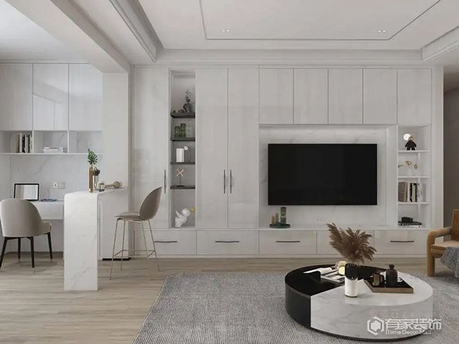 在家庭裝修中,為什么要做好收納?總結(jié)起來,大致上有三方面:視覺更整齊、容量變更大、拿取更方便。毫不夸張地說,收納沒有做好的裝修,就是有遺憾的裝修。畢竟,收納不合理,不僅讓上百萬的新家宛如出租房,還會直接影響入住新家的幸福感。無論是家里的哪個空間,收納都是重中之重。即便是“麻雀雖小五臟俱全”的小戶型,我們也要去想方設(shè)法做足收納。收納,并非簡單打柜子,是有技巧在里面。今天呢,廈門裝飾公司分享客廳收納的裝修攻略!