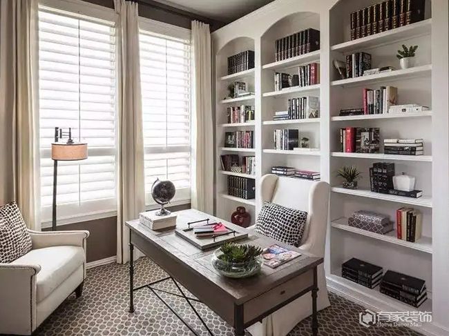 書房是家中一個重要的空間,可以用于工作、學(xué)習(xí)、閱讀等。在裝修書房時,廈門房屋裝飾必須考慮一些細(xì)節(jié)處理,包括空間布局、色彩和材質(zhì)、照明、家具和環(huán)境等。值得一提的是,收納更是書房裝修成敗關(guān)鍵。書房除了常規(guī)功能之外,收納是重中之重。