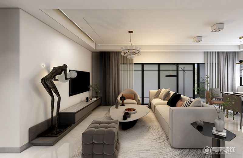 利用吊頂造型的變化,廈門(mén)別墅裝飾公司也可以實(shí)現(xiàn)空間的過(guò)渡。比如說(shuō)在客廳和餐廳的交界處,設(shè)計(jì)一個(gè)簡(jiǎn)單的吊頂造型,以增強(qiáng)空間感。當(dāng)然了,一些層高低的小戶型,不建議安裝吊頂。這種情況下,不做任何設(shè)計(jì)就行,以免空間出現(xiàn)壓抑感、通透性不好等問(wèn)題。在客廳和餐廳的交界處,也可以通過(guò)設(shè)計(jì)一面背景墻區(qū)分兩個(gè)空間。在背景墻上,掛一些裝飾畫(huà)或鏡子等進(jìn)行裝飾。