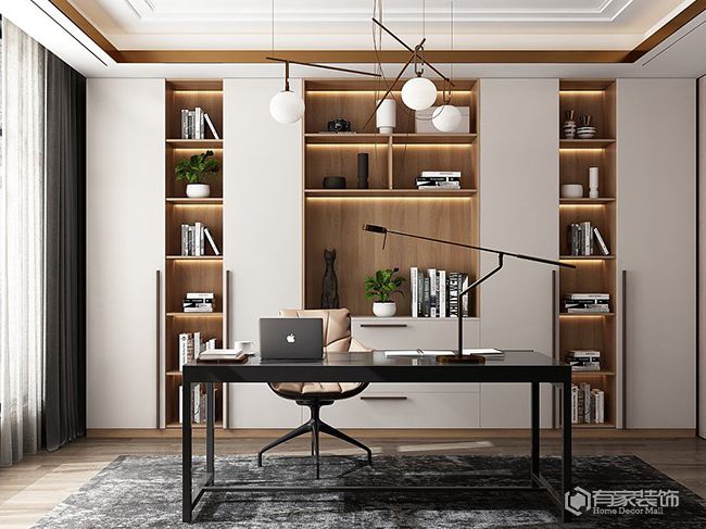 書房裝修有什么注意事項?書房不僅要滿足學習、閱讀和工作等基本功能,還可以考慮加入休閑娛樂的功能,如視聽設(shè)備、咖啡杯等。書房的色彩搭配,要符合整體家居風格。同時,也要考慮到對眼睛的保護。關(guān)于書房配色,廈門家庭裝修建議選擇柔和的色調(diào),如米白、淡藍或淡綠等。書房要有良好的采光和通風條件,保障室內(nèi)空氣的流通和適宜濕度。隔音,也是書房裝修的重點。