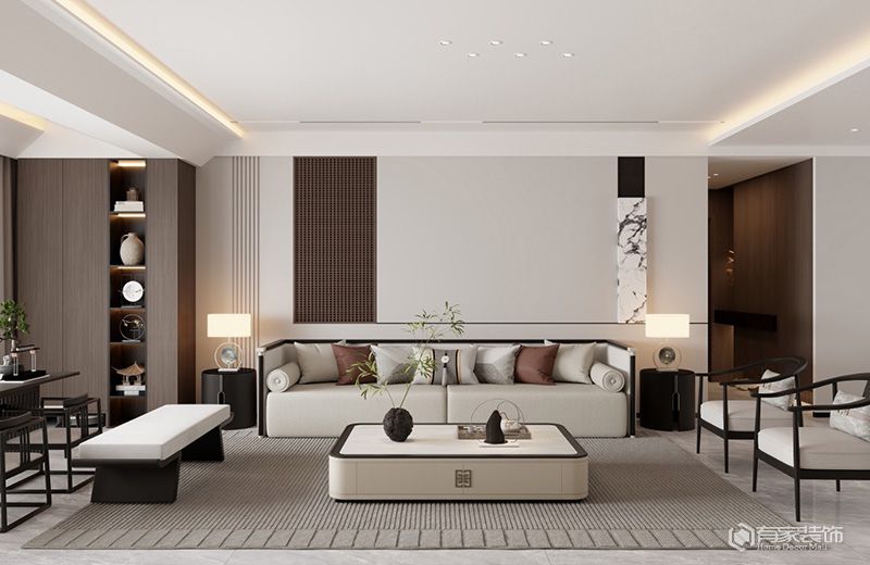 客廳沙發(fā)建議靠墻擺放,這樣看起來比較有安全感。如果沙發(fā)背后是門窗、通道等無法靠墻的情況,廈門裝潢裝修公司將會(huì)考慮使用屏風(fēng)、矮柜等家具來制造人造靠山。根據(jù)客廳的形狀和大小,選擇合適的沙發(fā)擺設(shè)法。常見沙發(fā)的擺設(shè),主要有L型、U型、平行和對(duì)稱等。L型擺設(shè)法,適合寬敞的客廳,滿足不同家庭成員的需求;U型擺設(shè)法,則適合空間稍大的客廳,便于家人圍坐交流。