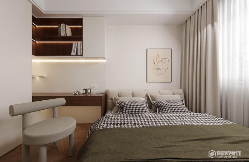 臥室燈光如何布局更靠譜?結(jié)合臥室的天花吊頂、床頭背板、窗簾槽等來(lái)布置燈槽,通過(guò)燈槽漫反射整體打亮臥室空間,營(yíng)造溫馨舒適的臥室氛圍。床尾區(qū)域,安裝圓形射燈組合或格柵射燈。床頭區(qū)域,選擇臺(tái)燈、壁燈、吊燈或落地?zé)舻葻艟摺H绻匀还饩€(xiàn)較好,廈門(mén)家庭裝飾公司推薦無(wú)主燈設(shè)計(jì)。用分散的射燈、筒燈等,各種輔助光源配合主要照明,目的是增加臥室的整體亮度。
